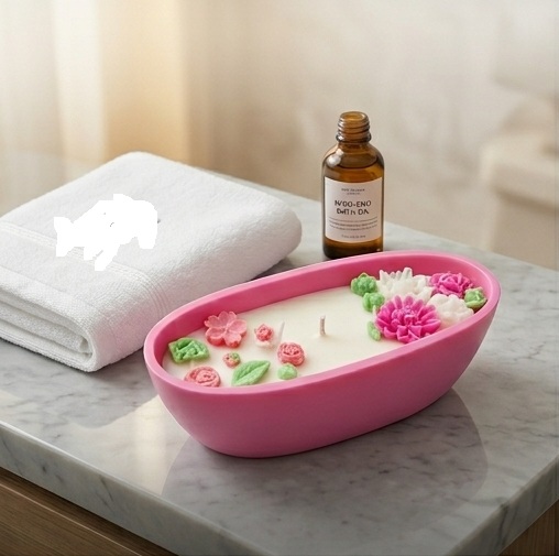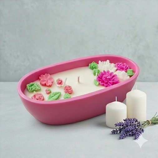 Handcrafted decorative soy wax oval candle with intricate floral artistry, designed for gifting and décor.