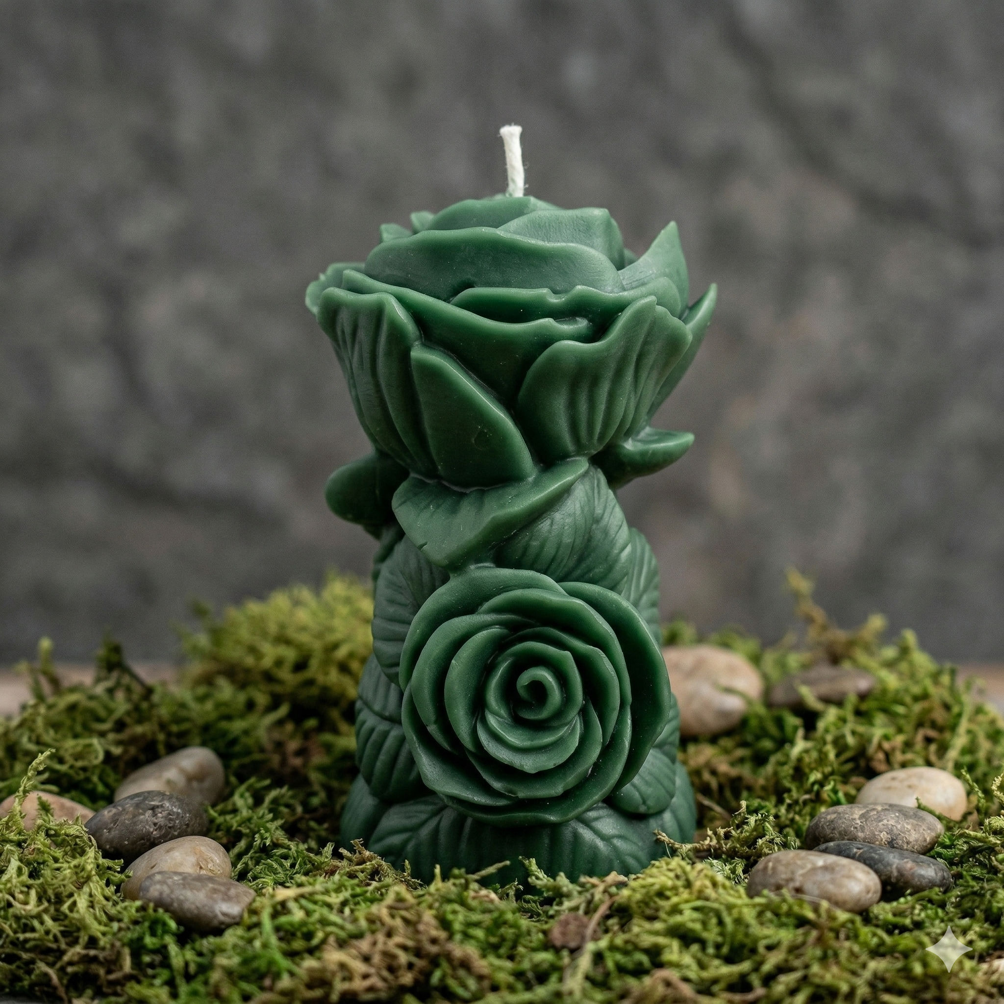 Handcrafted soy wax candle featuring twin rose design, perfect for décor and gifting.